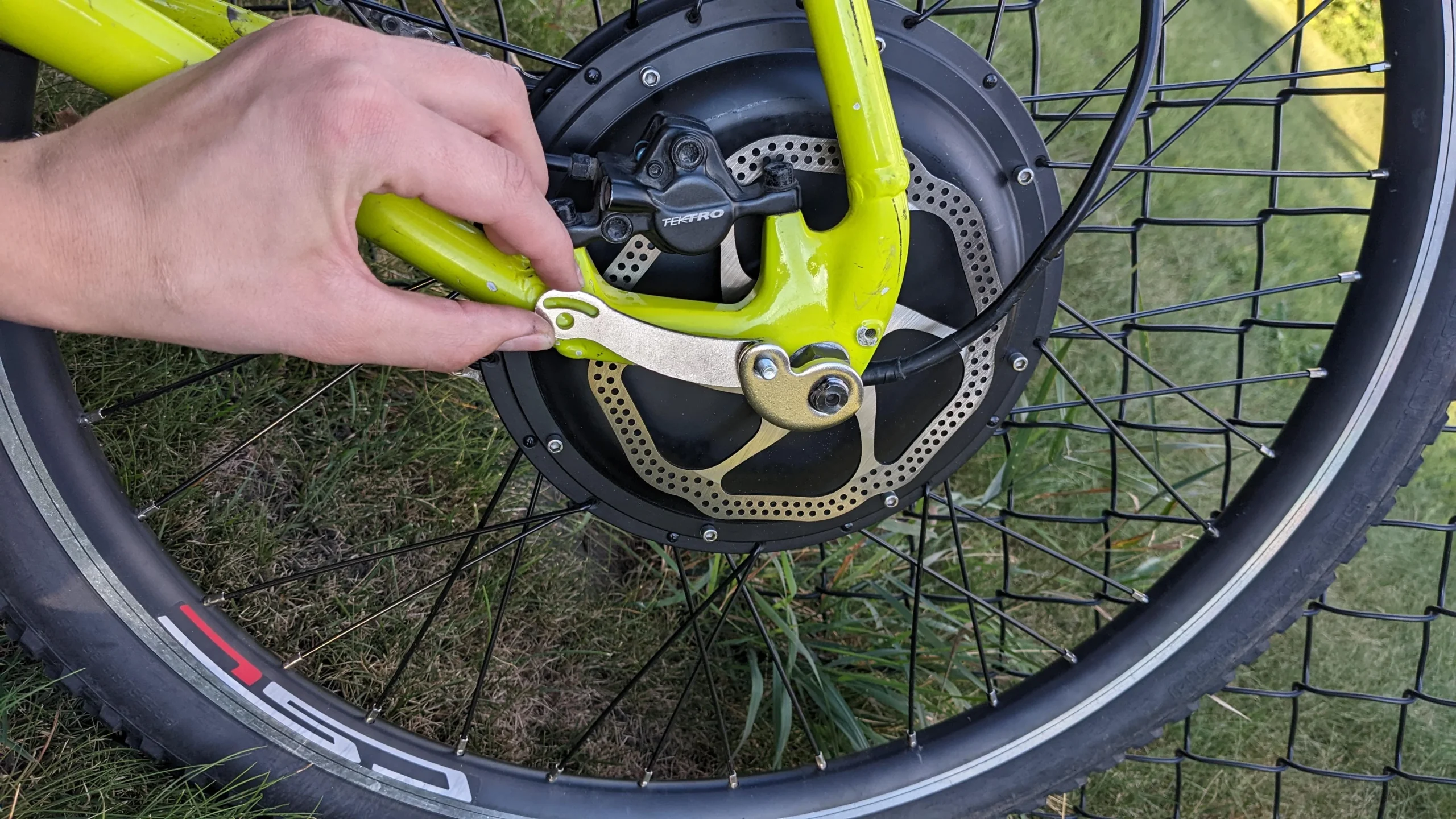 • Fork compatibility matters. Most manufacturers prohibit hub motors on carbon forks: a torque arm doesn’t override that warning. Steel or robust aluminum forks are preferred.